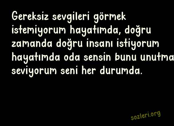 Gereksiz sevgileri görmek istemiyorum hayatımda, doğru zamanda doğru insanı istiyorum hayatımda oda sensin bunu unutma seviyorum seni her durumda. ( Sevenler İçin Mesajlar )