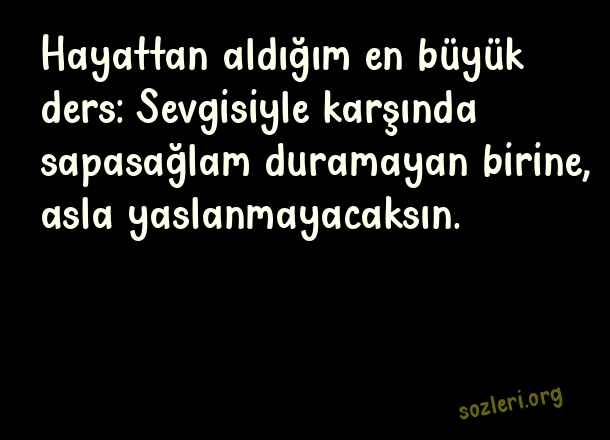 Hayattan aldığım en büyük ders: Sevgisiyle karşında sapasağlam duramayan birine, asla yaslanmayacaksın. ( Sevenler İçin Mesajlar )