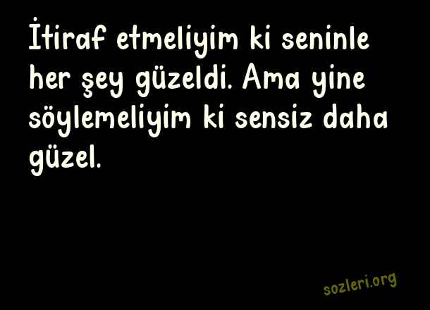 İtiraf etmeliyim ki seninle her şey güzeldi. Ama yine söylemeliyim ki sensiz daha güzel. ( Sevenler İçin Mesajlar )