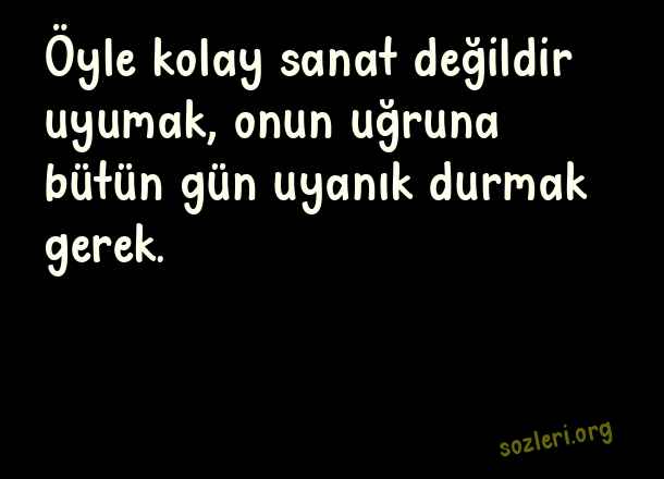 Öyle kolay sanat değildir uyumak, onun uğruna bütün gün uyanık durmak gerek. ( Sevenler İçin Mesajlar )