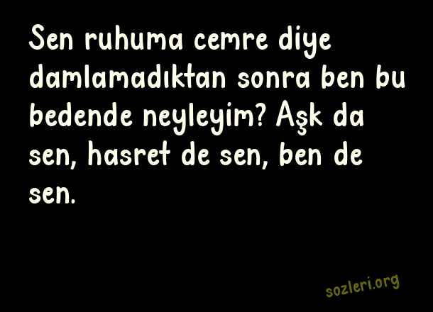 Sen ruhuma cemre diye damlamadıktan sonra ben bu bedende neyleyim? Aşk da sen, hasret de sen, ben de sen. ( Sevenler İçin Mesajlar )