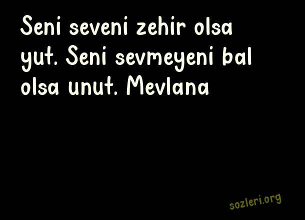 Seni seveni zehir olsa yut. Seni sevmeyeni bal olsa unut. Mevlana ( Sevenler İçin Mesajlar )