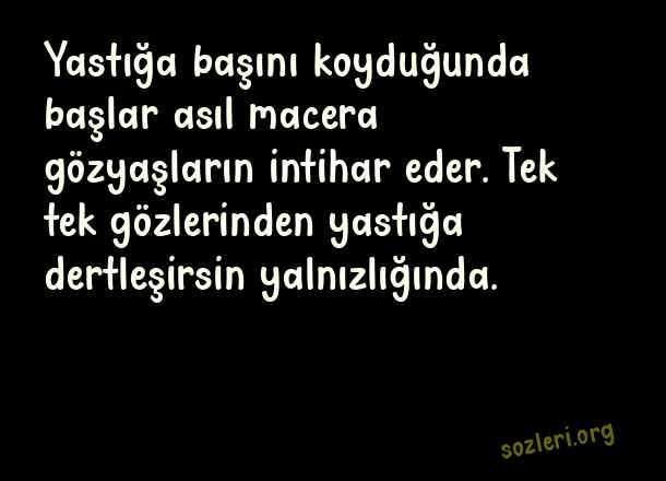 Yastığa başını koyduğunda başlar asıl macera gözyaşların intihar eder. Tek tek gözlerinden yastığa dertleşirsin yalnızlığında. ( Sevenler İçin Mesajlar )