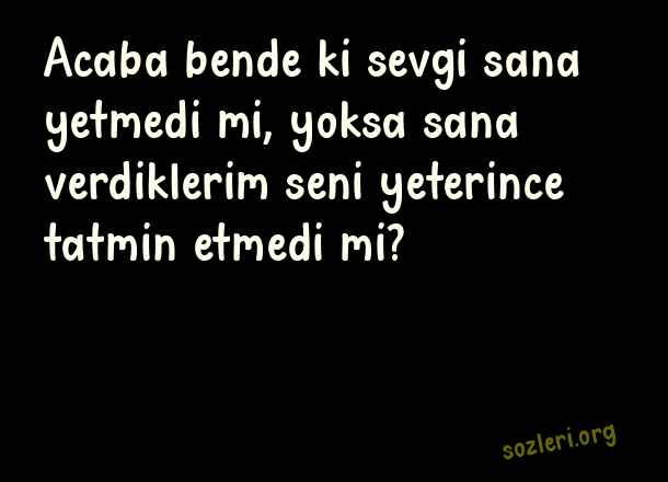 Acaba bende ki sevgi sana yetmedi mi, yoksa sana verdiklerim seni yeterince tatmin etmedi mi? ( Aldatan Sevgiliye Kapak Sözler )