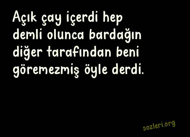 Açık çay içerdi hep demli olunca bardağın diğer tarafından beni göremezmiş öyle derdi. ( En Çok Paylaşılan Sevgi )