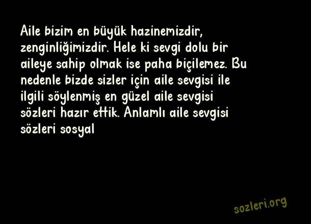Aile bizim en büyük hazinemizdir, zenginliğimizdir. Hele ki sevgi dolu bir aileye sahip olmak ise paha biçilemez. Bu nedenle bizde sizler için aile sevgisi ile ilgili söylenmiş en güzel aile sevgisi sözleri hazır ettik. Anlamlı aile sevgisi sözleri sosyal ( Aile Sevgisi )