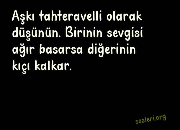 Aşkı tahteravelli olarak düşünün. Birinin sevgisi ağır basarsa diğerinin kıçı kalkar. ( Eski Sevgiliye Sözler )
