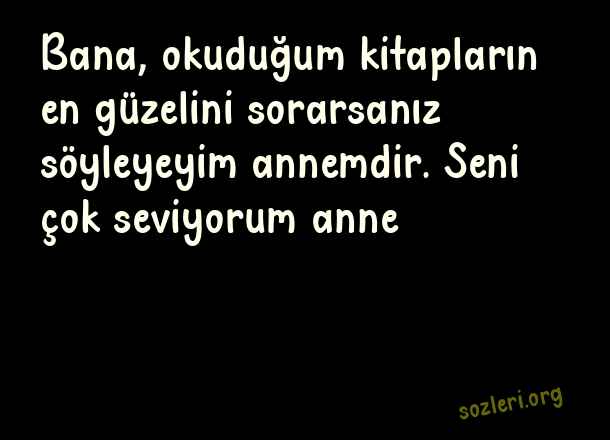 Bana, okuduğum kitapların en güzelini sorarsanız söyleyeyim annemdir. Seni çok seviyorum anne… ( Anne Sevgisi İle İlgili Güzel Sözler )