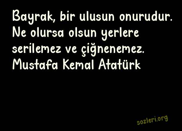 Bayrak, bir ulusun onurudur. Ne olursa olsun yerlere serilemez ve çiğnenemez. Mustafa Kemal Atatürk ( Bayrak Sevgisi )