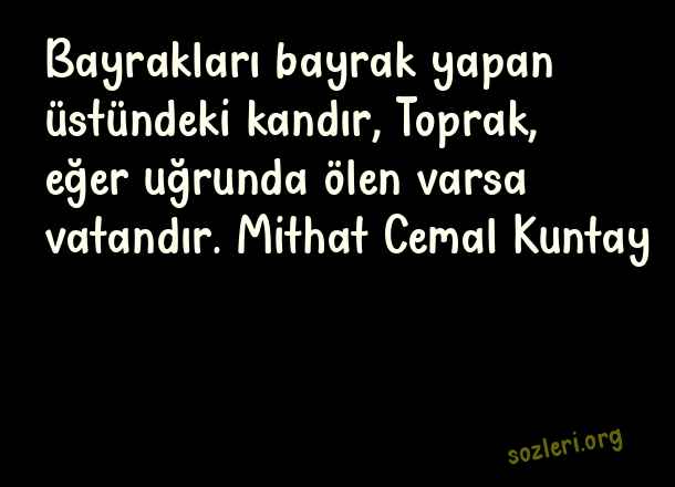 Bayrakları bayrak yapan üstündeki kandır, Toprak, eğer uğrunda ölen varsa vatandır. Mithat Cemal Kuntay ( Bayrak Sevgisi )