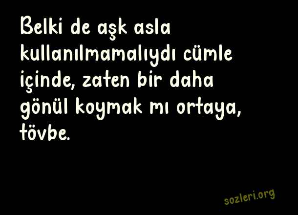 Belki de aşk asla kullanılmamalıydı cümle içinde, zaten bir daha gönül koymak mı ortaya, tövbe. ( Duygusal Sevgi )