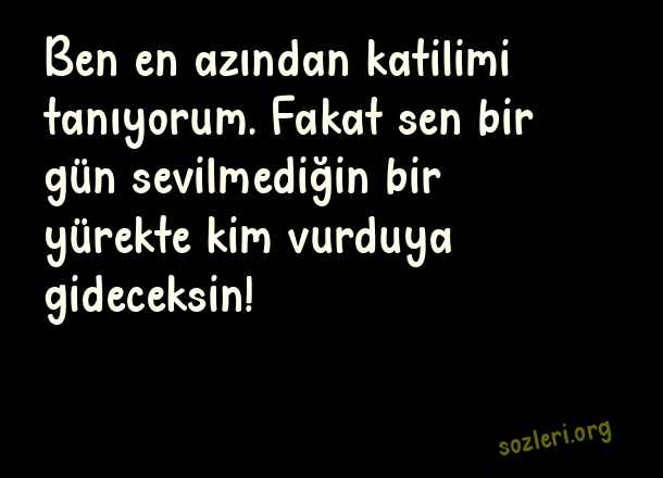 Ben en azından katilimi tanıyorum. Fakat sen bir gün sevilmediğin bir yürekte kim vurduya gideceksin! ( Eski Sevgiliye Sözler )