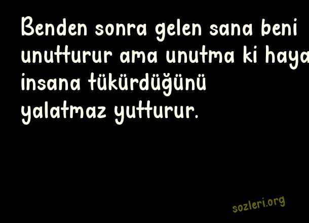 Benden sonra gelen sana beni unutturur ama unutma ki hayat insana tükürdüğünü yalatmaz yutturur. ( Aldatan Sevgiliye Kapak Sözler )