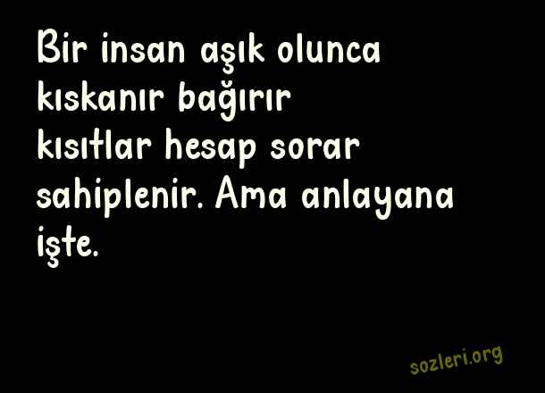 Bir insan aşık olunca kıskanır bağırır kısıtlar hesap sorar sahiplenir. Ama anlayana işte. ( En Çok Paylaşılan Sevgi )