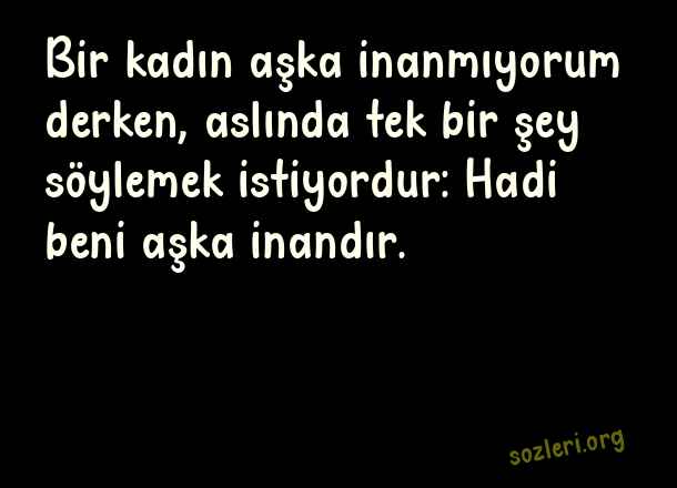 Bir kadın aşka inanmıyorum derken, aslında tek bir şey söylemek istiyordur: Hadi beni aşka inandır. ( Duygusal Sevgi )