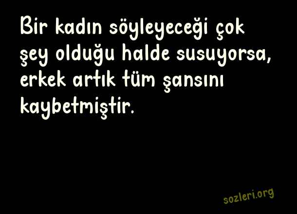 Bir kadın söyleyeceği çok şey olduğu halde susuyorsa, erkek artık tüm şansını kaybetmiştir. ( Aldatan Sevgiliye Kapak Sözler )
