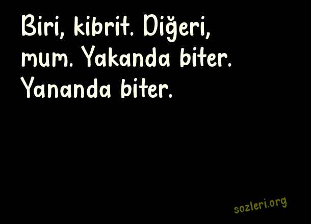 Biri, kibrit. Diğeri, mum. Yakanda biter. Yananda biter. ( Erkek Sevgiliye Aşk )