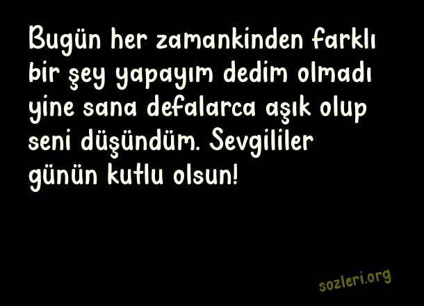 Bugün her zamankinden farklı bir şey yapayım dedim olmadı yine sana defalarca aşık olup seni düşündüm. Sevgililer günün kutlu olsun! ( 14 Şubat Sevgililer Günü İle İlgili Mesajlar )