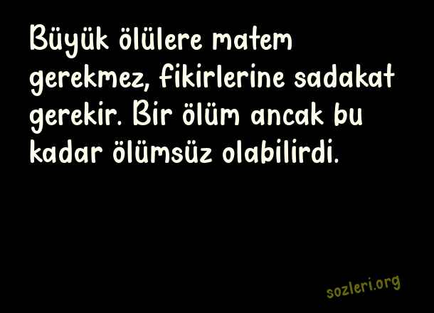 Büyük ölülere matem gerekmez, fikirlerine sadakat gerekir. Bir ölüm ancak bu kadar ölümsüz olabilirdi. ( Atatürk Sevgisini Anlatan Sözler )