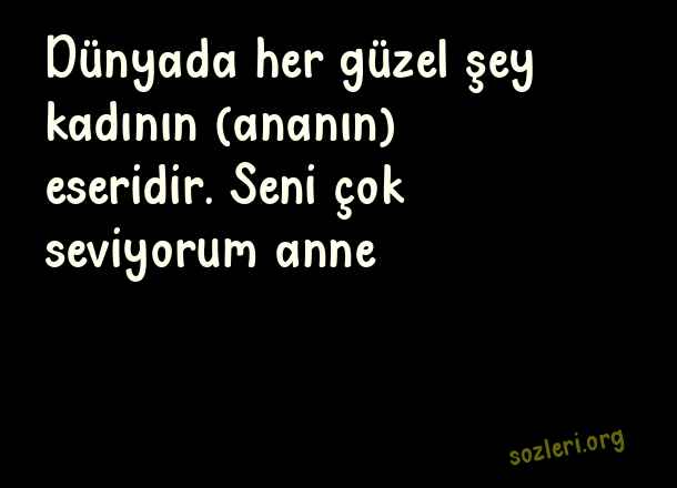 Dünyada her güzel şey kadının (ananın) eseridir. Seni çok seviyorum anne… ( Anne Sevgisi İle İlgili Güzel Sözler )