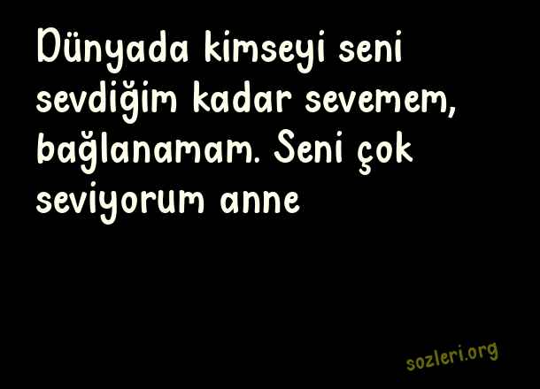 Dünyada kimseyi seni sevdiğim kadar sevemem, bağlanamam. Seni çok seviyorum anne… ( Anne Sevgisi İle İlgili Güzel Sözler )