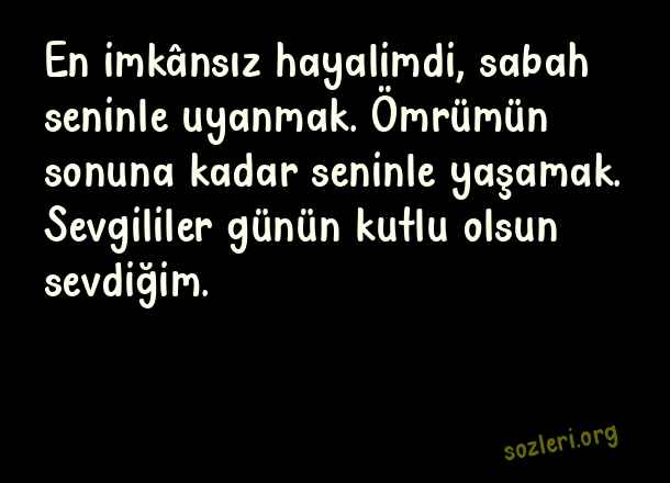En imkânsız hayalimdi, sabah seninle uyanmak. Ömrümün sonuna kadar seninle yaşamak. Sevgililer günün kutlu olsun sevdiğim. ( 2022 Sevgililer Günü )