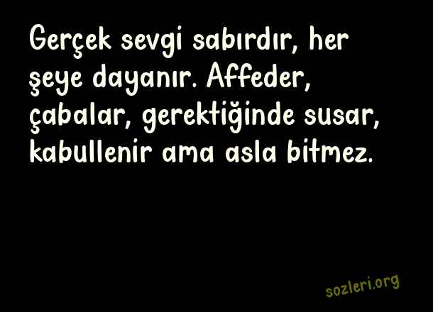 Gerçek sevgi sabırdır, her şeye dayanır. Affeder, çabalar, gerektiğinde susar, kabullenir ama asla bitmez. ( Duygusal Sevgi )