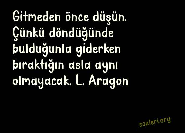 Gitmeden önce düşün. Çünkü döndüğünde bulduğunla giderken bıraktığın asla aynı olmayacak. L. Aragon ( Eski Sevgiliye Sözler )