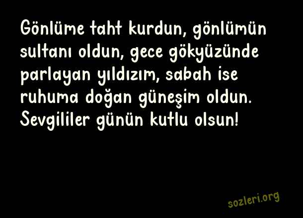 Gönlüme taht kurdun, gönlümün sultanı oldun, gece gökyüzünde parlayan yıldızım, sabah ise ruhuma doğan güneşim oldun. Sevgililer günün kutlu olsun! ( 2022 Sevgililer Günü )