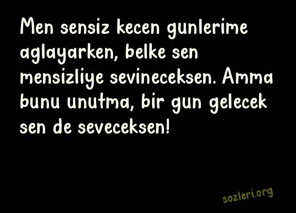 Men sensiz kecen gunlerime aglayarken, belke sen mensizliye sevineceksen. Amma bunu unutma, bir gun gelecek sen de seveceksen! ( Azerice Sevgi )
