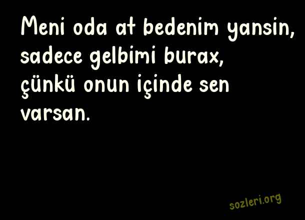 Meni oda at bedenim yansin, sadece gelbimi burax, çünkü onun içinde sen varsan. ( Azerice Sevgi )