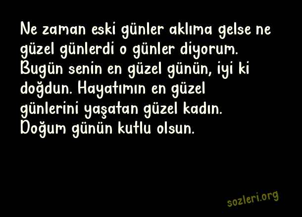 Ne zaman eski günler aklıma gelse ne güzel günlerdi o günler diyorum. Bugün senin en güzel günün, iyi ki doğdun. Hayatımın en güzel günlerini yaşatan güzel kadın. Doğum günün kutlu olsun. ( Eski Sevgiliye Doğum Günü )