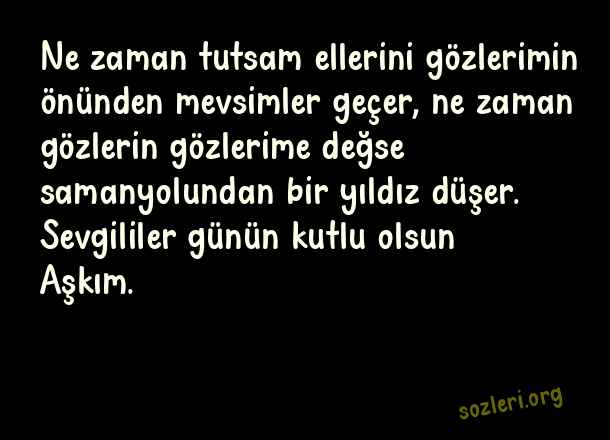 Ne zaman tutsam ellerini gözlerimin önünden mevsimler geçer, ne zaman gözlerin gözlerime değse samanyolundan bir yıldız düşer. Sevgililer günün kutlu olsun Aşkım. ( 2022 Sevgililer Günü )
