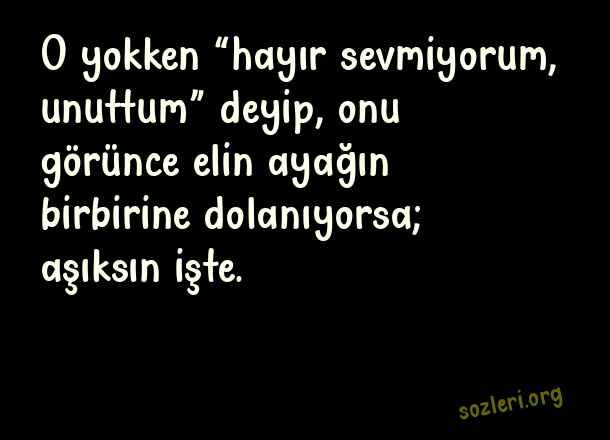 O yokken “hayır sevmiyorum, unuttum” deyip, onu görünce elin ayağın birbirine dolanıyorsa; aşıksın işte. ( Duygusal Sevgi )