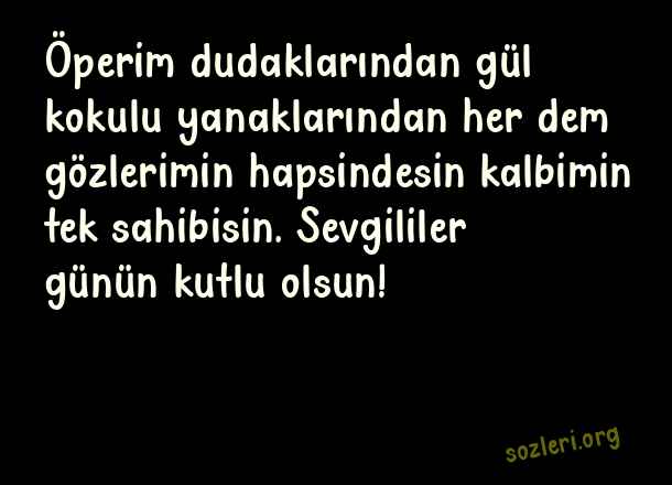 Öperim dudaklarından gül kokulu yanaklarından her dem gözlerimin hapsindesin kalbimin tek sahibisin. Sevgililer günün kutlu olsun! ( 2021 Sevgililer Günü )
