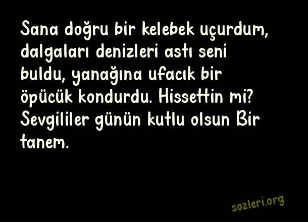 Sana doğru bir kelebek uçurdum, dalgaları denizleri astı seni buldu, yanağına ufacık bir öpücük kondurdu. Hissettin mi? Sevgililer günün kutlu olsun Bir tanem. ( 2021 Sevgililer Günü )