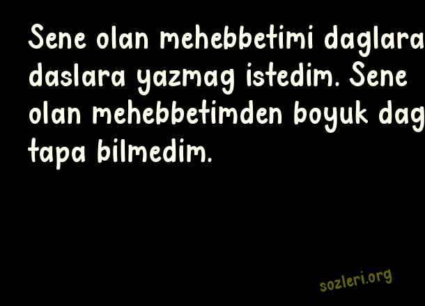 Sene olan mehebbetimi daglara daslara yazmag istedim. Sene olan mehebbetimden boyuk dag tapa bilmedim. ( Azerice Sevgi )