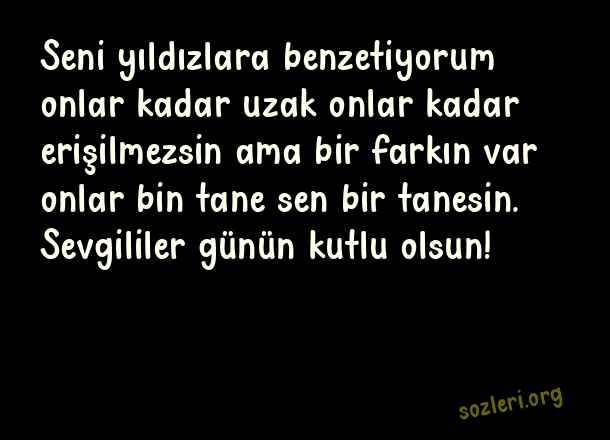 Seni yıldızlara benzetiyorum onlar kadar uzak onlar kadar erişilmezsin ama bir farkın var onlar bin tane sen bir tanesin. Sevgililer günün kutlu olsun! ( En Güzel Sevgililer Günü )