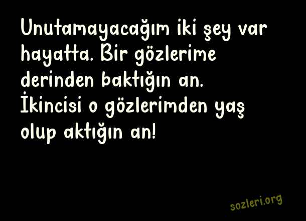 Unutamayacağım pekguzelsozler.com iki şey var hayatta! Bir, gözlerime derinden baktığın an! İki, yine o gözlerim den yaş olup da aktığım an.