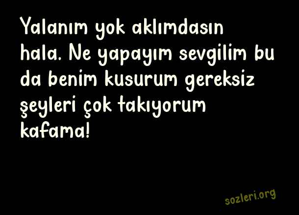 Yalanım yok aklımdasın hala. Ne yapayım sevgilim bu da benim kusurum gereksiz şeyleri çok takıyorum kafama! ( Eski Sevgiliye Sözler )