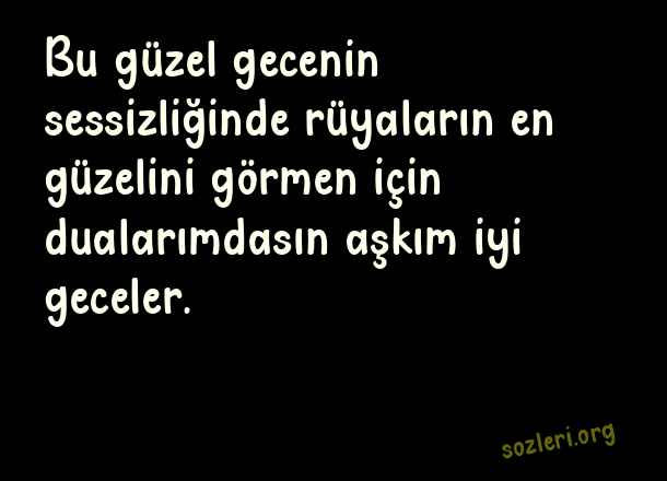 Bu güzel gecenin sessizliğinde rüyaların en güzelini görmen için dualarımdasın aşkım iyi geceler. ( Uzaktaki Sevgiliye İyi Geceler )