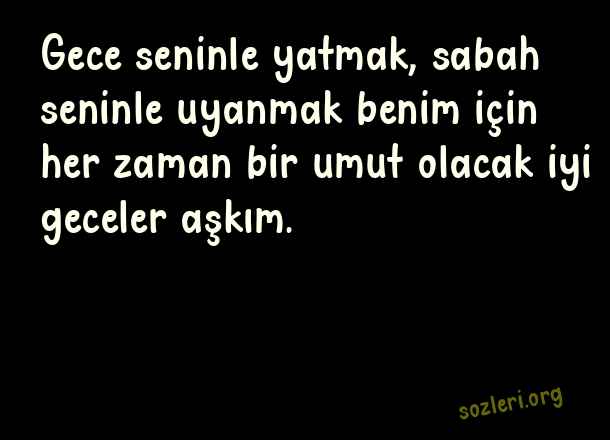 Gece seninle yatmak, sabah seninle uyanmak benim için her zaman bir umut olacak iyi geceler aşkım. ( Uzaktaki Sevgiliye İyi Geceler )