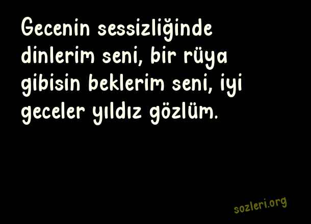Gecenin sessizliğinde dinlerim seni, bir rüya gibisin beklerim seni, iyi geceler yıldız gözlüm. ( Sevgiliye İyi Geceler )