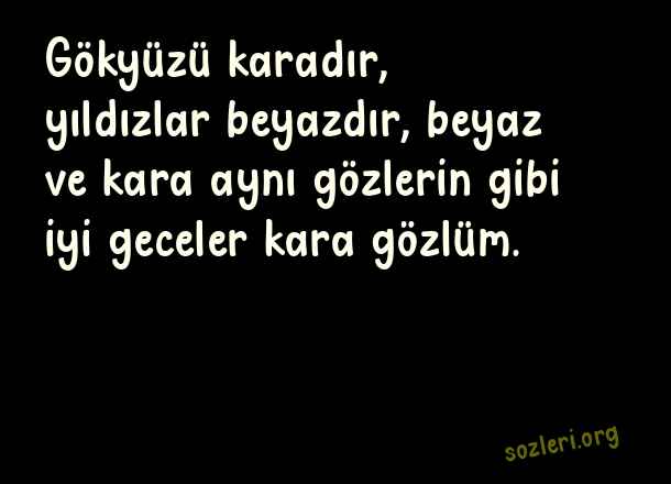 Gökyüzü karadır, yıldızlar beyazdır, beyaz ve kara aynı gözlerin gibi iyi geceler kara gözlüm. ( Uzaktaki Sevgiliye İyi Geceler )