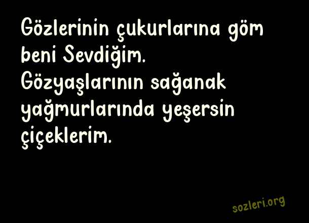 Gözlerinin çukurlarına göm beni Sevdiğim. Gözyaşlarının sağanak yağmurlarında yeşersin çiçeklerim. ( Uzaktaki Sevgiliye İyi Geceler )