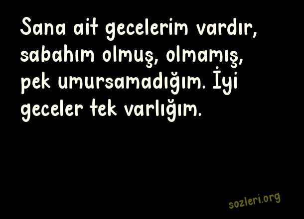 Sana ait gecelerim vardır, sabahım olmuş, olmamış, pek umursamadığım. İyi geceler tek varlığım. ( Uzaktaki Sevgiliye İyi Geceler )
