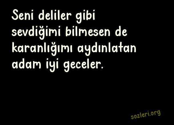 Seni deliler gibi sevdiğimi bilmesen de karanlığımı aydınlatan adam iyi geceler. ( Uzaktaki Sevgiliye İyi Geceler )