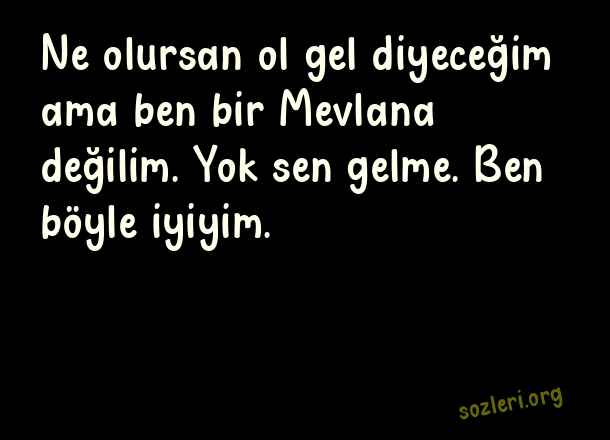 Ne olursan ol gel diyeceğim ama ben bir Mevlana değilim. Yok sen gelme. Ben böyle iyiyim. ( Sevgiliye Komik Sözler )