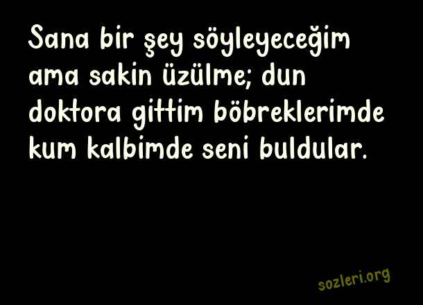 Sana bir şey söyleyeceğim ama sakin üzülme; dun doktora gittim böbreklerimde kum kalbimde seni buldular. ( Sevgiliye Komik Sözler )