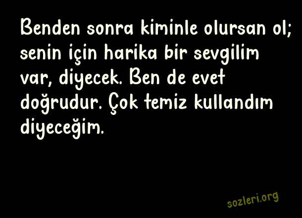 Benden sonra kiminle olursan ol; senin için harika bir sevgilim var, diyecek. Ben de evet doğrudur. Çok temiz kullandım diyeceğim. ( Sevgiliye Laf Sokucu Sözler )